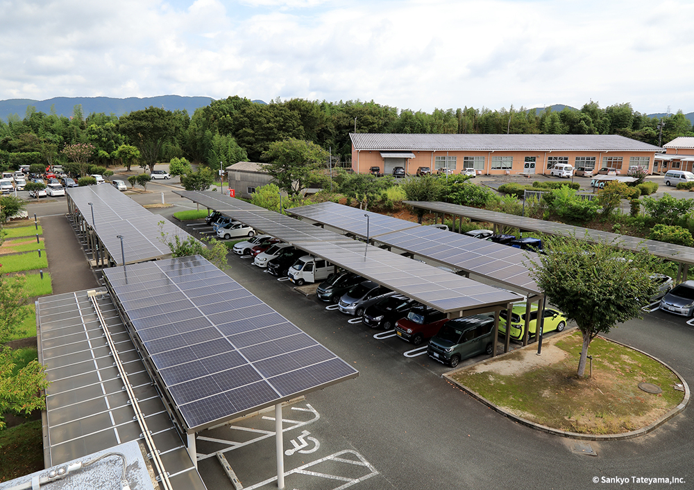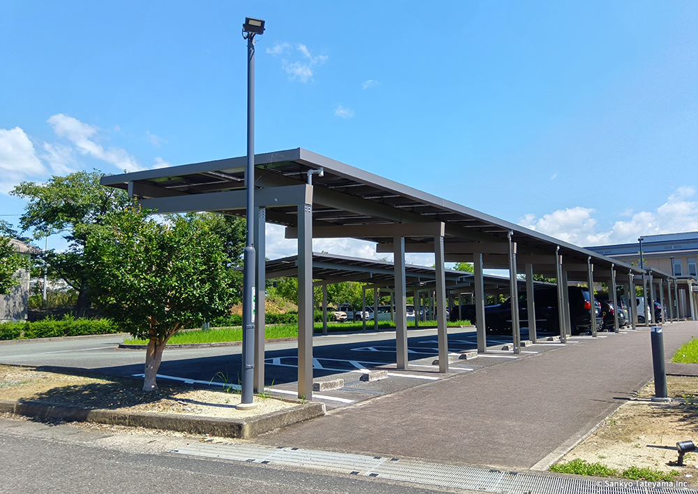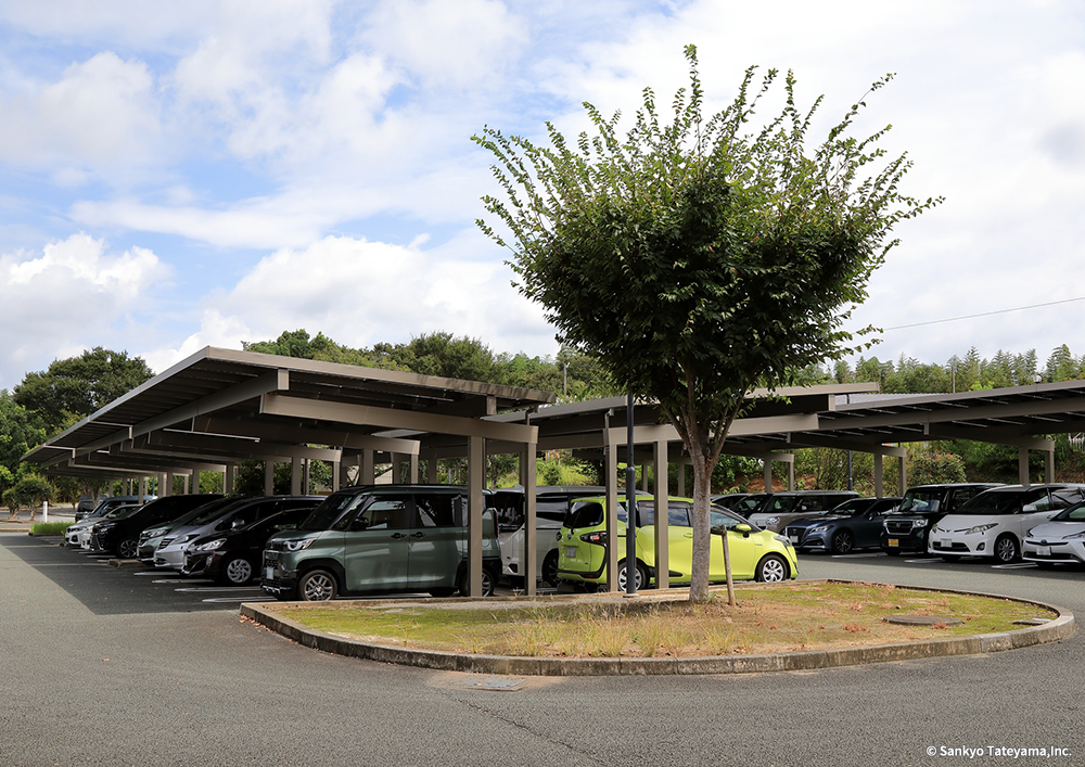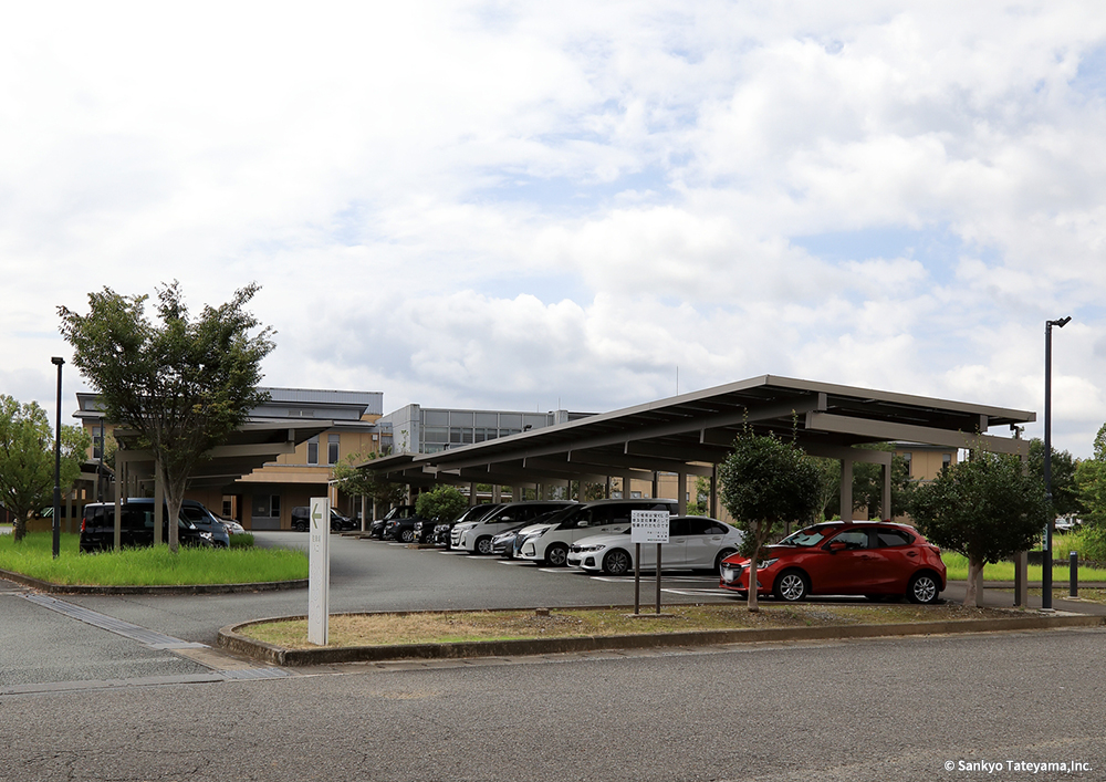 近年、ソーラーパネルの広がりが、田園風景などで景観課題として懸念される事例がみられる。ソーラーパネルの設置は、今回の事例のように本来必要とされる機能を持った設備に、さりげなく組み合わされることが最良解決である。雨天などでの車の乗り降りに、屋根が欠かせないのは身障者だけではない、今回駐車場全体での活用に踏み切られた点に敬意を表したい。昨今の猛暑においては、停車中の車内温度上昇への対応も不可欠である。多くの駐車車両の景観を、緑を入れることで緩和する工夫もされているなど、好印象で評価された。